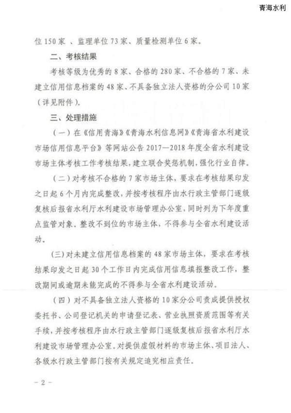 转自青海省水利厅关于2017-2018年度全省水利建设市场主体考核结果的通报
