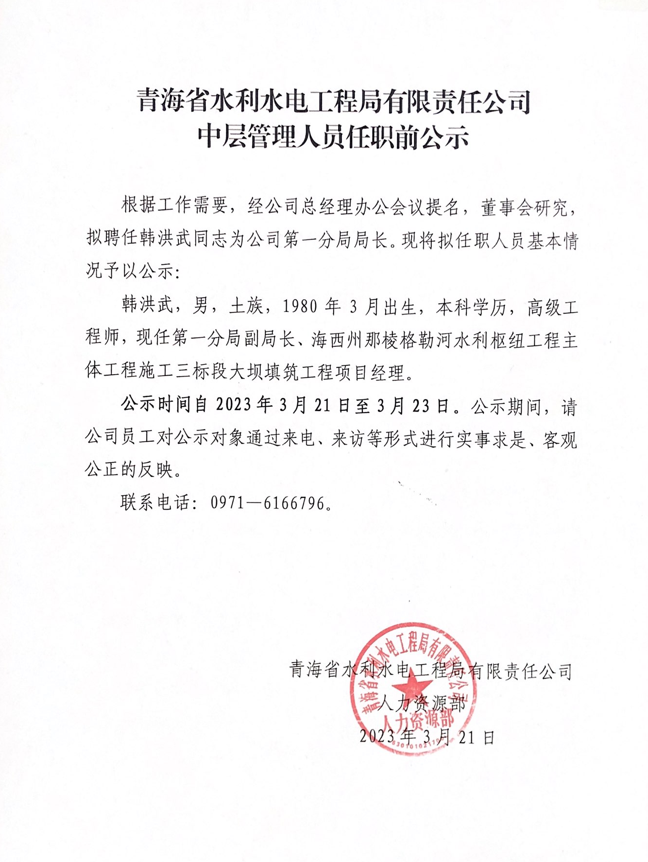 中层管理人员任职前公示